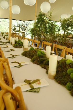 De la mousse pour les tables, du flou pour l'Eglise, un univers doux et original pour ces amoureux.