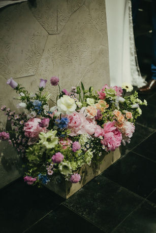 Cérémonie dans l'incroyable Eglise de Bouvines. Explosion de couleurs pour le choix floral de Marine et Alex.